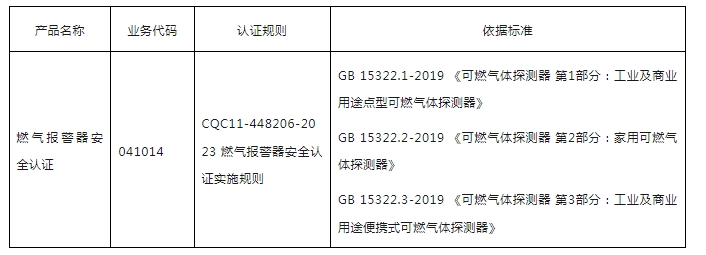 中國質量認證中心(CQC)研發并推出了燃氣報警器安全認證業務,具體信息如下: