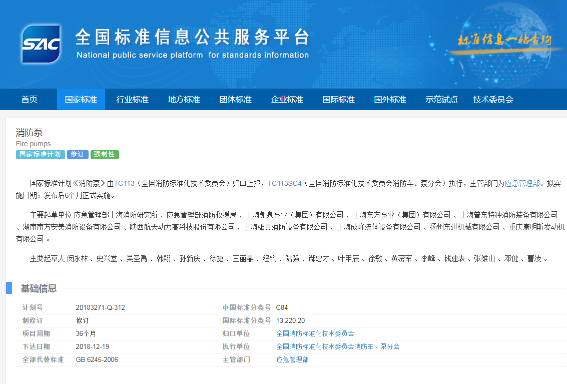 2019年8月,標(biāo)準(zhǔn)修訂工作組開始起草《消防泵》標(biāo)準(zhǔn)征求意見稿,收集整理了156個單位及個人修訂意見,并召開了 GB6245《消防泵》國家標(biāo)準(zhǔn)修訂方案討論會。作為專注生產(chǎn)消防泵的企業(yè),上海成峰受邀參與GB6245《消防泵》國家標(biāo)準(zhǔn)制定,助推行業(yè)發(fā)展。
