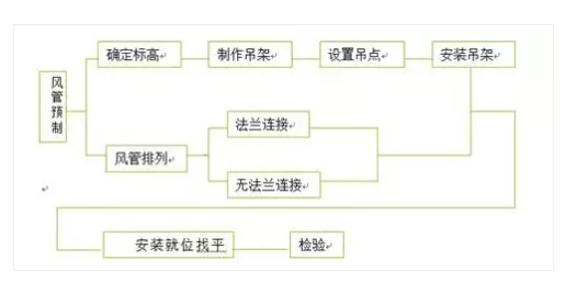 1、風管及部件安裝前,清除內外雜物及污垢并保持清潔。安裝風管時,為安裝方便,在條件允許的情況下,盡量在地面上進行連接,一般接至10~12m長左右。