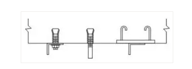 (2)支吊架的固定采用以下幾種方法:①膨脹螺栓法。本方法適用于規格較小的風管支吊架的固定。本工程支吊架固定大多數采用此法,通過在樓板、梁柱上打膨脹螺栓固定支吊架。②焊接法。本方法適用于風管規格大,使用膨脹螺栓固定不能滿足強度時,采用預埋件焊接固定支吊架。支架固定形式見下圖。