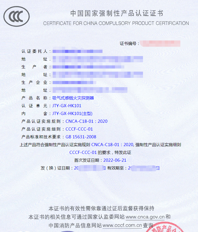 吸氣式感煙火災(zāi)探測器認(rèn)證檢驗(yàn)要求