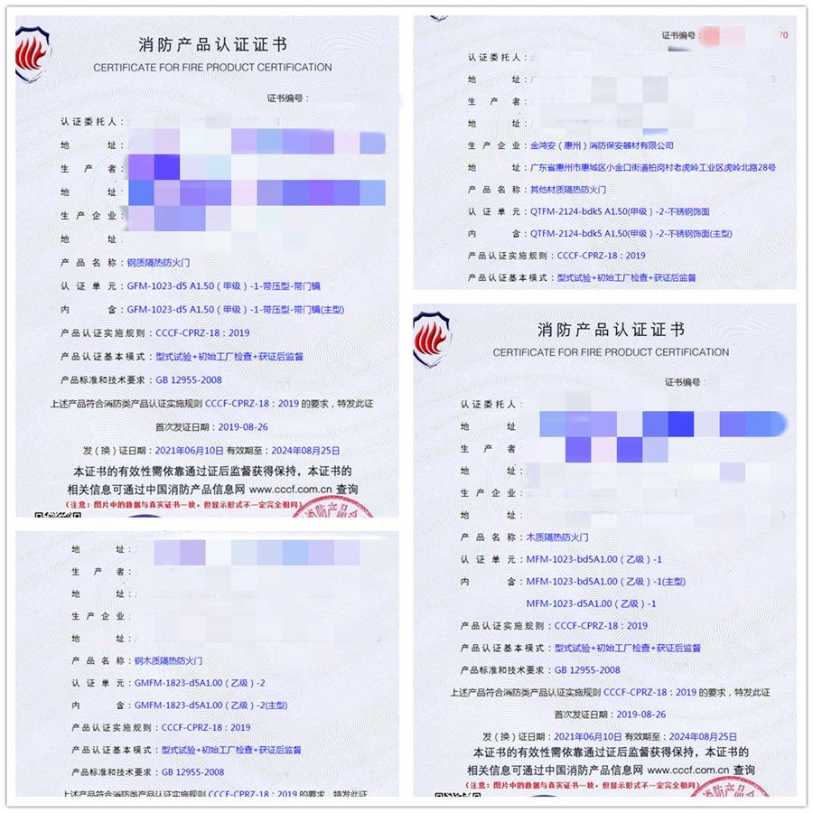 祝賀我司惠州地區(qū)客戶申請的(鋼質(zhì)隔熱防火門、其他材質(zhì)隔熱防火門、木質(zhì)隔熱防火門、鋼木質(zhì)隔熱防火門)已于2021年6月10號獲證,同祝企業(yè)生意興隆,財(cái)源滾滾。