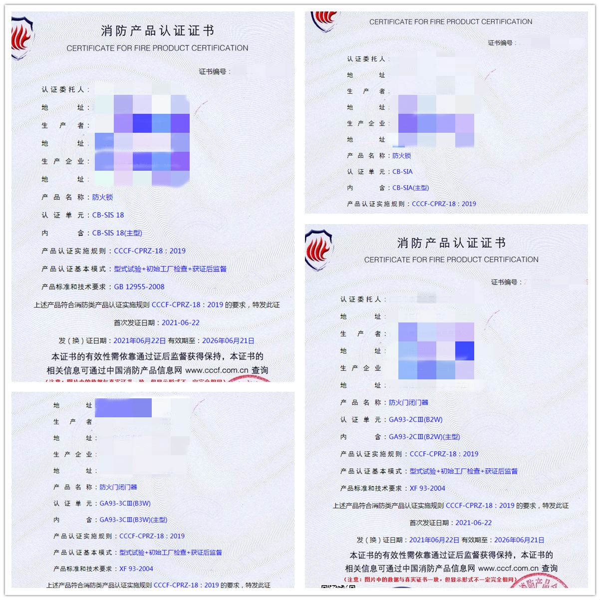 祝賀我司河北地區客戶申請的(防火鎖、防火門閉門器)已于2021年6月22號獲證,同祝企業生意興隆,財源滾滾。