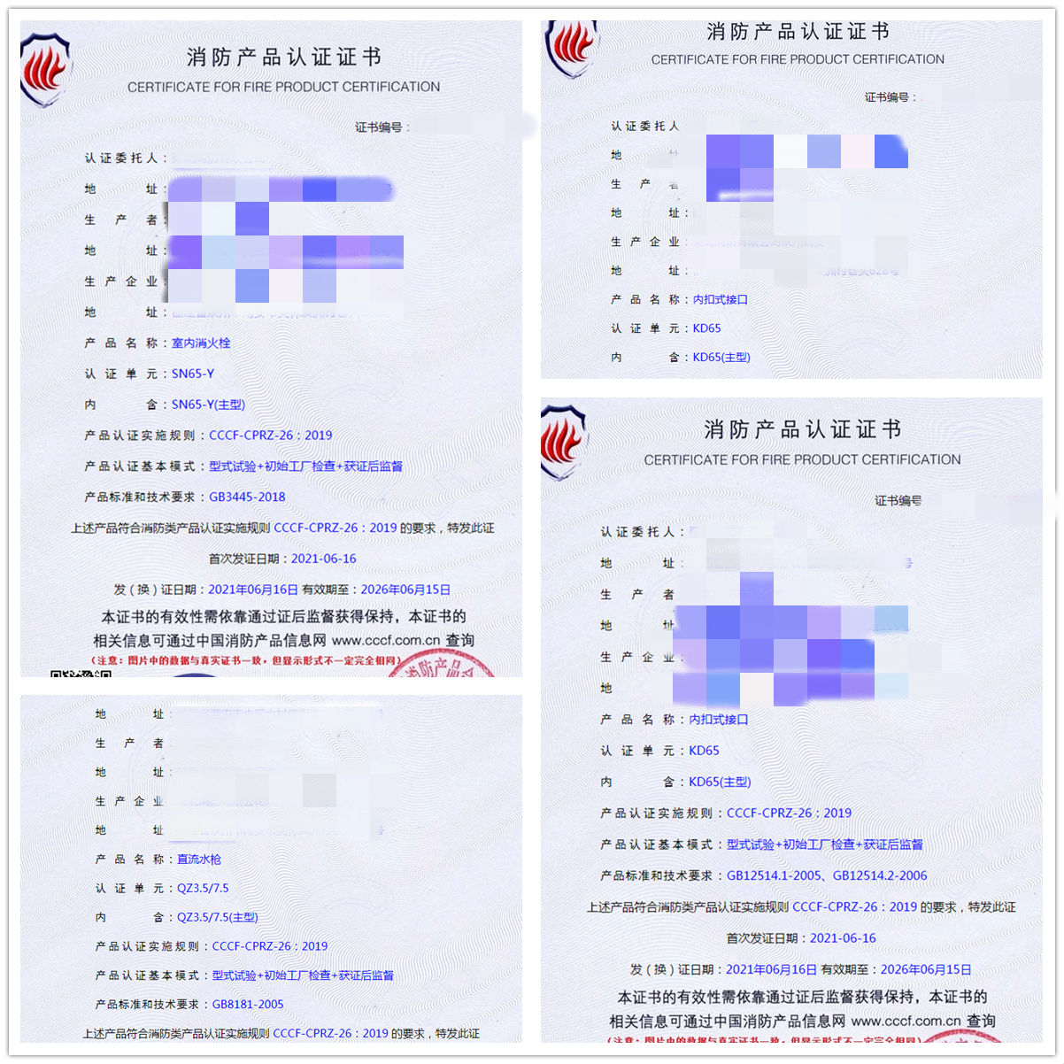 祝賀我司陜西地區(qū)客戶申請的(室內(nèi)消火栓、內(nèi)扣式接口、直流水槍)已于2021年6月16號獲證,同祝企業(yè)生意興隆,財源滾滾。