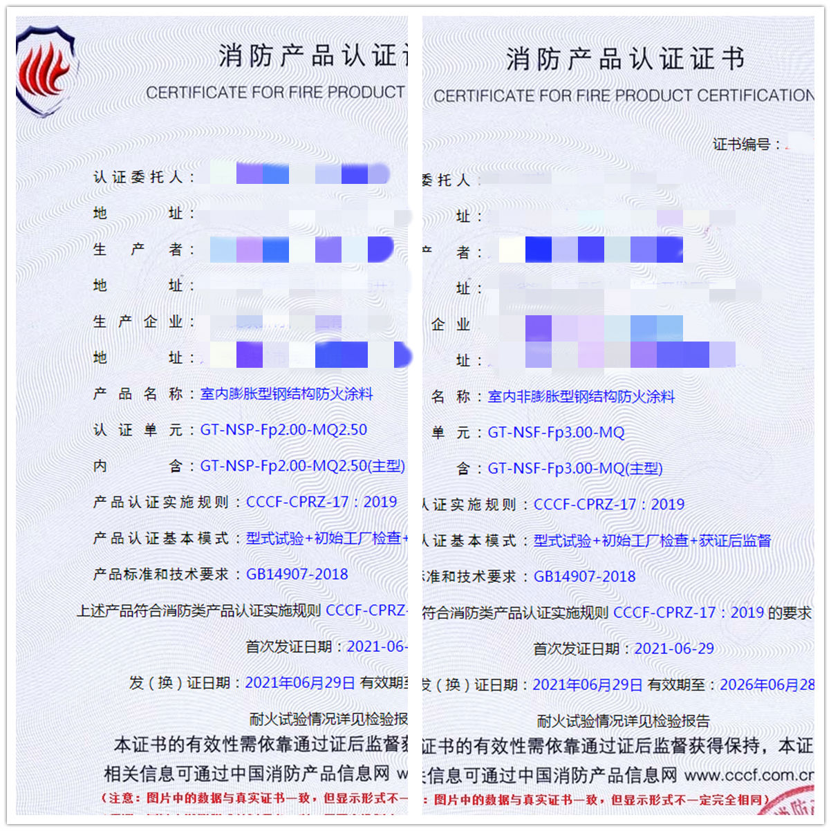 祝賀我司遼寧地區客戶申請的(室內膨脹型鋼結構防火涂料、室內非膨脹型鋼結構防火涂料)已于2021年6月29號獲證,同祝企業生意興隆,財源滾滾。